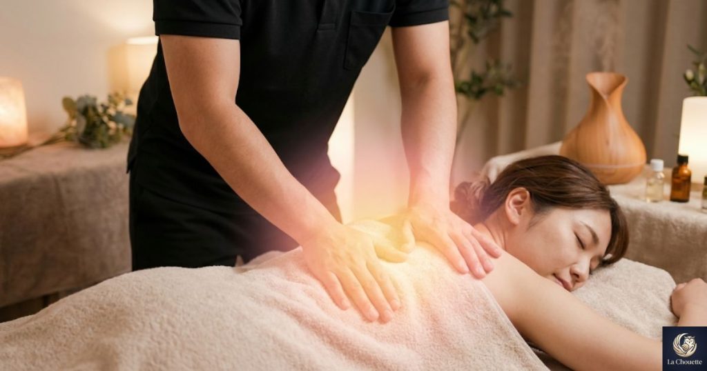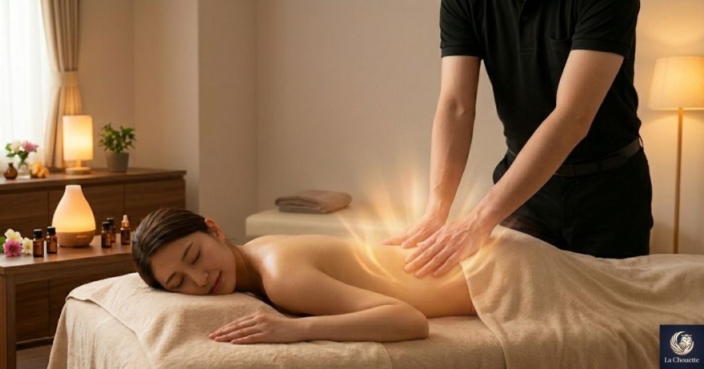 非日常的な落ち着いた空間で、異性のセラピストから丁寧なケアを受けること。最初はほんの少しだけドキドキするかもしれませんが、そのわずかな緊張感が、温かい手技とアロマの香りによって一気に「深い安心」へと変わります。